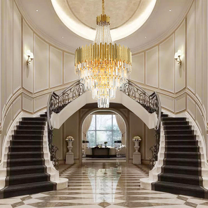 Candelabro de cristal LED de lujo dorado grande para iluminación interior del vestíbulo del hotel luces colgantes de diseño individual