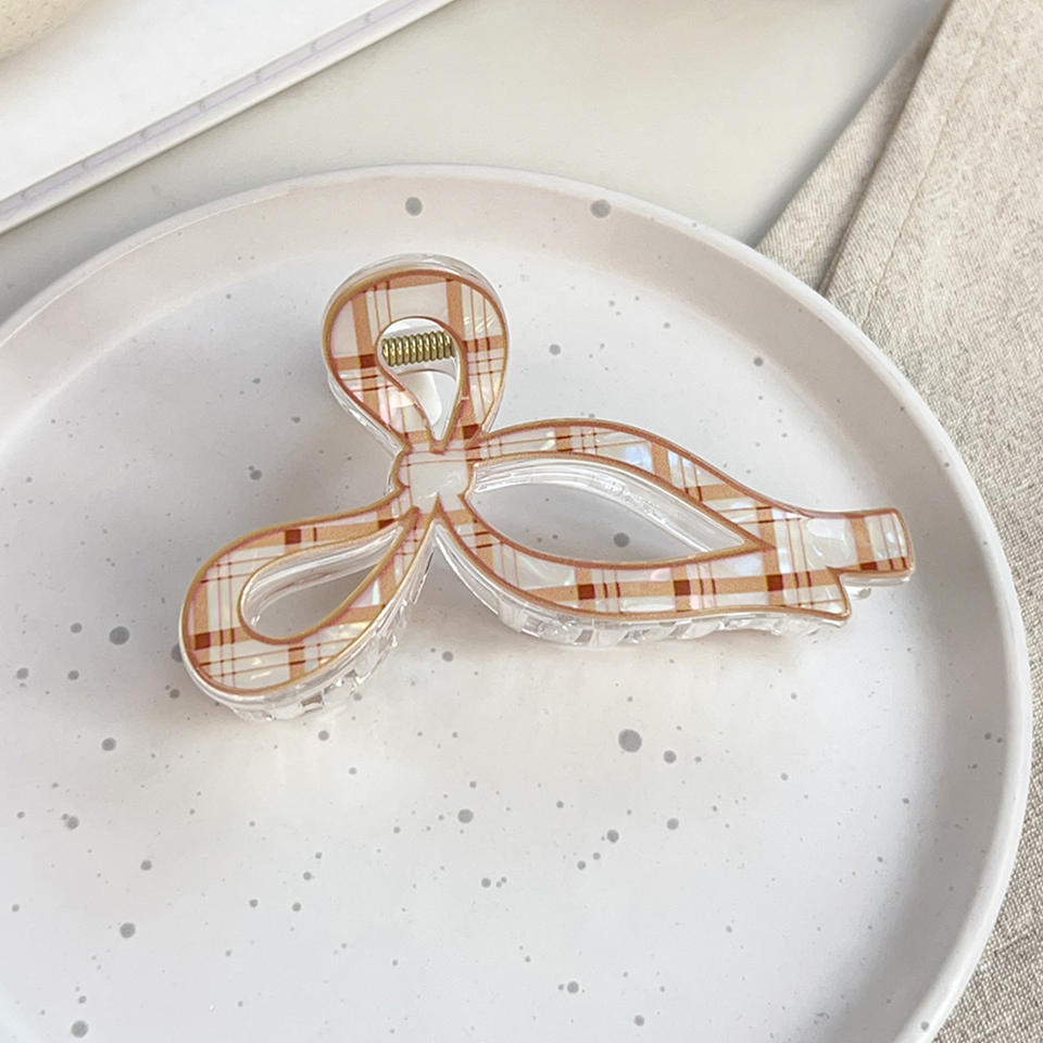 Pinzas de Pelo Grandes con Lazo Degradado, Lindas Pinzas de Pelo con Forma de Lazo Colorido y Parche a Cuadros
