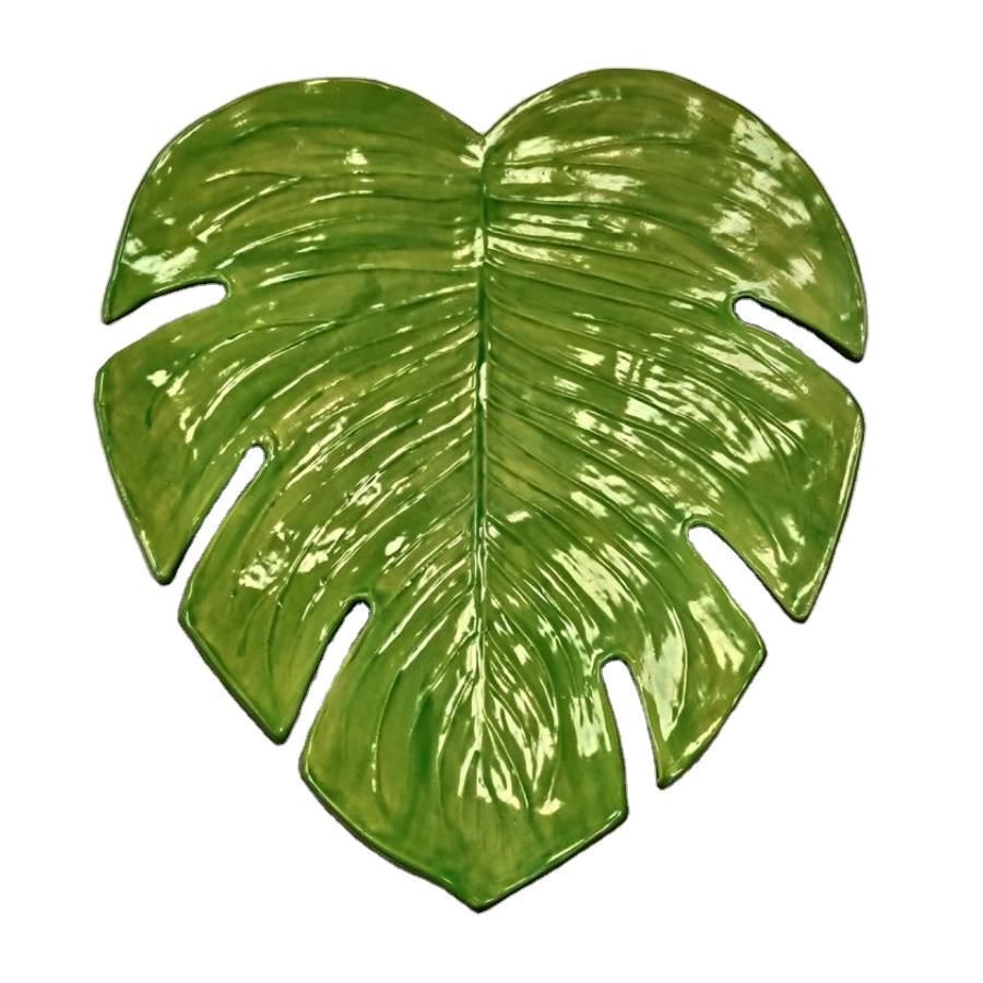 Bandeja y plato grande de hojas verdes, plato de Metal seguro para servir alimentos, bandejas de esmalte alto de estilo americano, accesorios de decoración del hogar