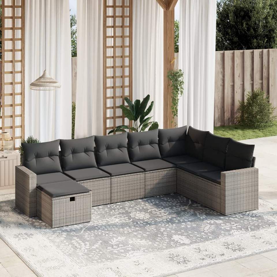 Conjunto de Sofá Grande para Jardín en Poliratán Gris con Acero con Recubrimiento en Polvo, Muebles Elegantes para Exteriores