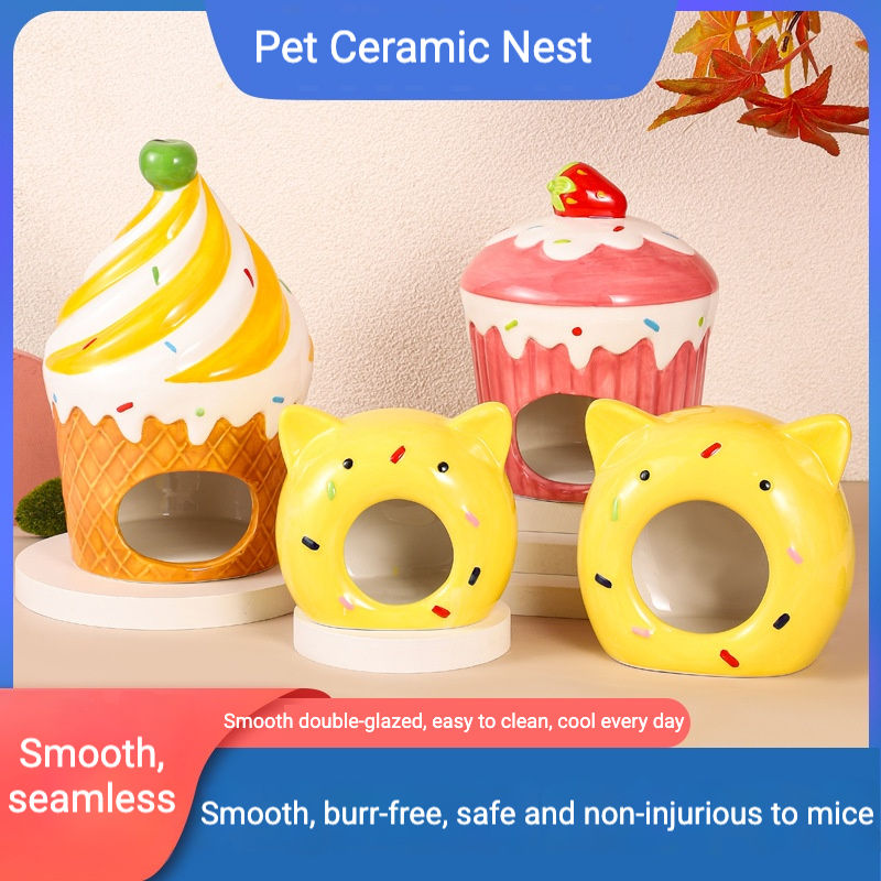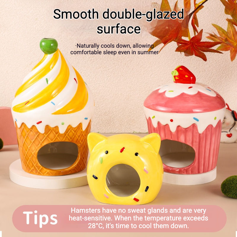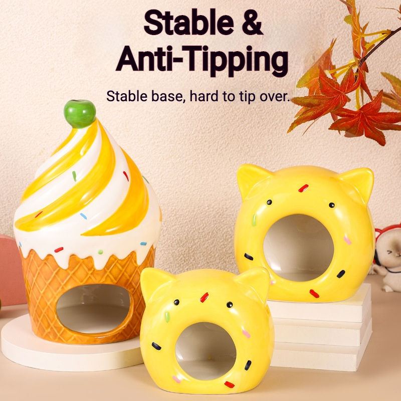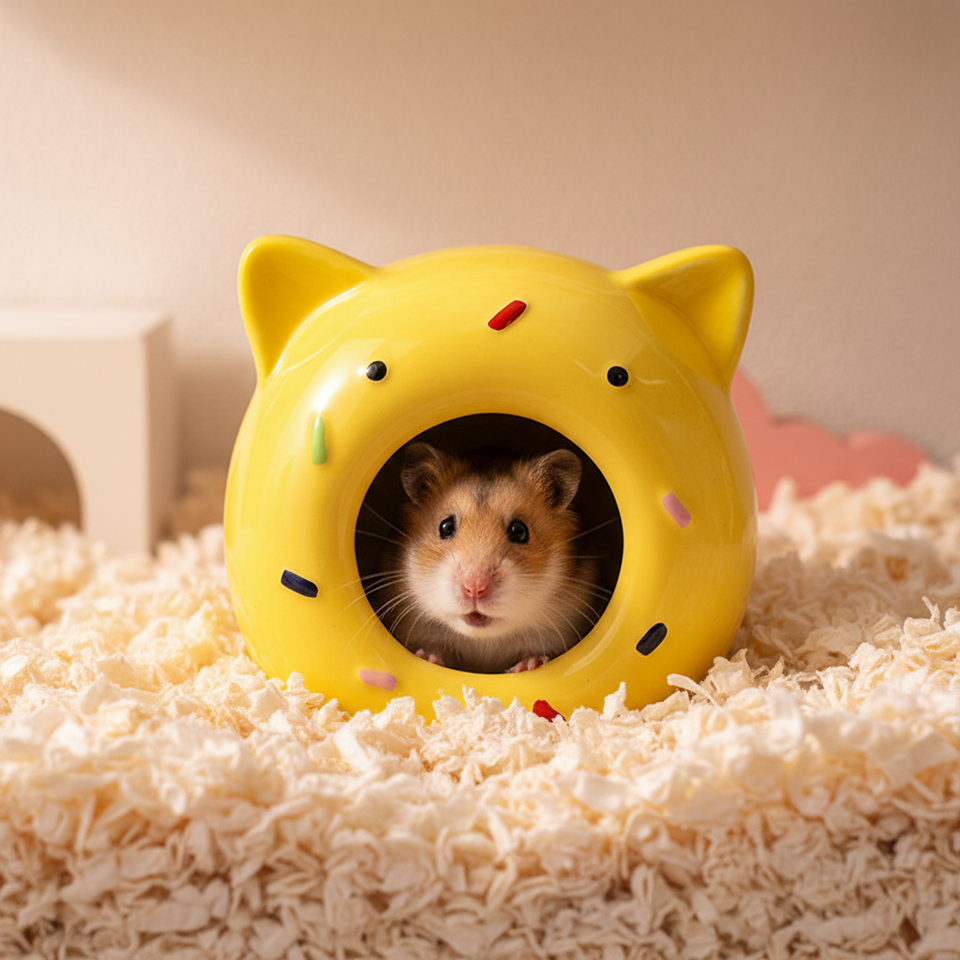 Escondite Grande para Hámster con Función de Refrigeración, Material Cerámico Ecológico en Forma de Donut