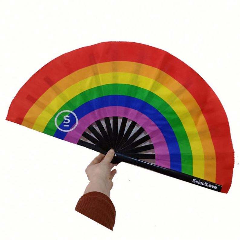 Abanicos Plegables Grandes de 33 cm, Diseño Arcoíris, Bambú de Alta Calidad, Abanico Personalizado para Fiestas