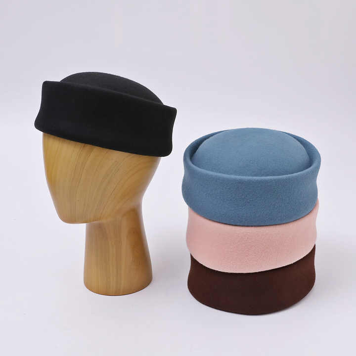 Boina de Lana Pura para Mujer, Talla Grande, Estilo Retro Británico, Elegante Sombrero de Azafata Personalizable