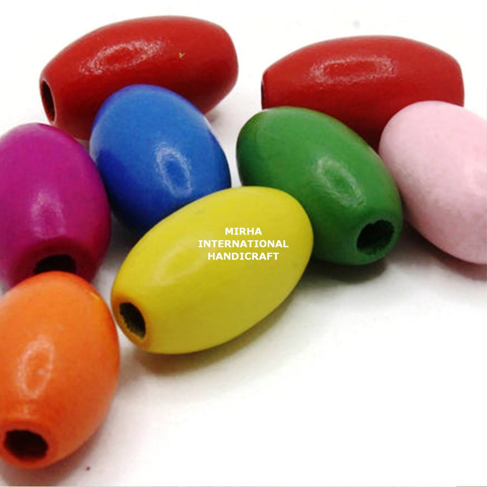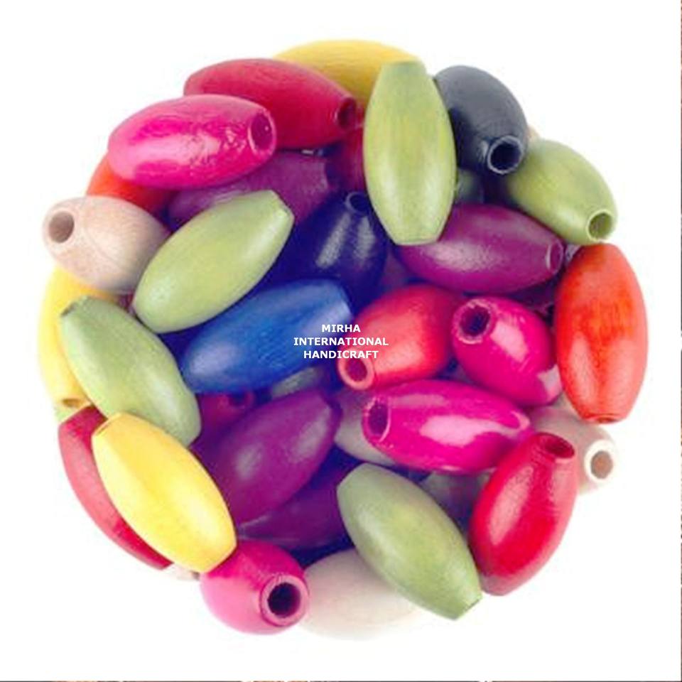 Cuentas de agujeros grandes con forma etiquetada Cuentas de madera de colores personalizadas ovaladas en forma y tamaño Entrega rápida desde la India