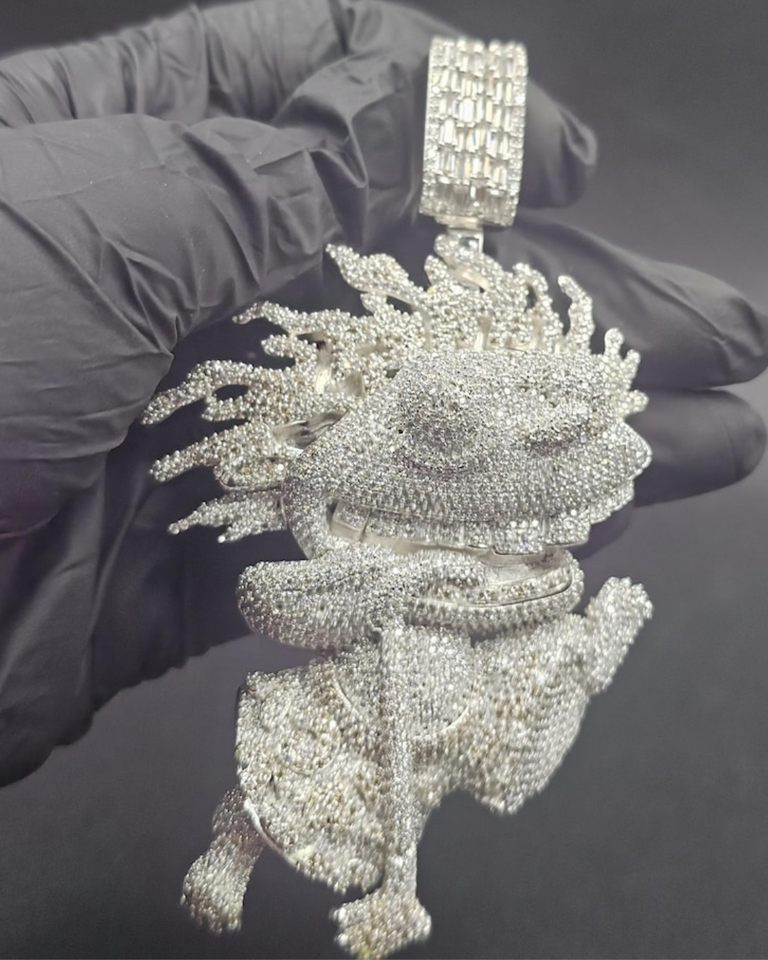 Colgante Grande de Personaje de Dibujos Animados con Diseño de Llama, Totalmente Engastado en Moissanita, Joyería Hip Hop, Colgante Personalizado con Engaste Baguette