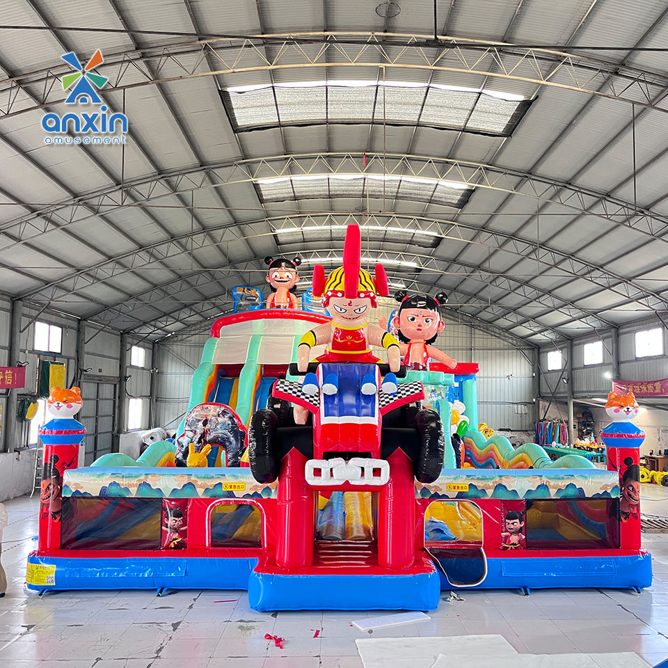 Castillo Inflable Grande con Tobogán, Diseño de Personajes de Nezha, para Niños, para Eventos y Parques de Diversiones