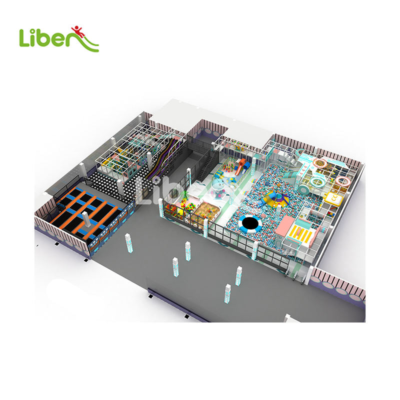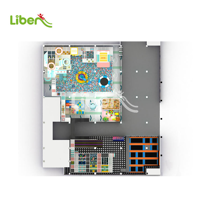 Gran Parque de Aventuras Interior de Estilo Moderno y Funcional para Niños, con Zona de Juegos Suave, Trampolín y Circuito Ninja