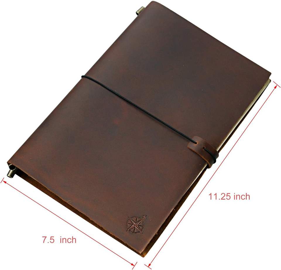 Diario de cuero grande-El cuaderno de viajero recargable Grande-Perfecto para escribir, dibujar, álbumes de recortes