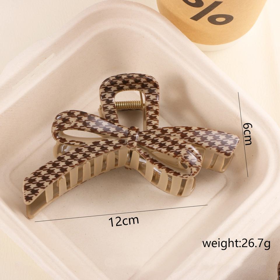 Pinza de pelo grande de plástico de 12 cm con estampado de leopardo y pata de gallo, color café, para mujer, con diseño hueco, para fiesta de graduación