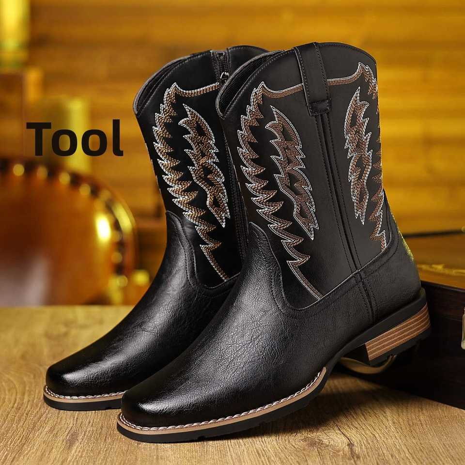 Botas vaqueras de caña alta bordadas para hombre, botas de caballero con bloques de color a la moda, botas de equitación con punta cuadrada