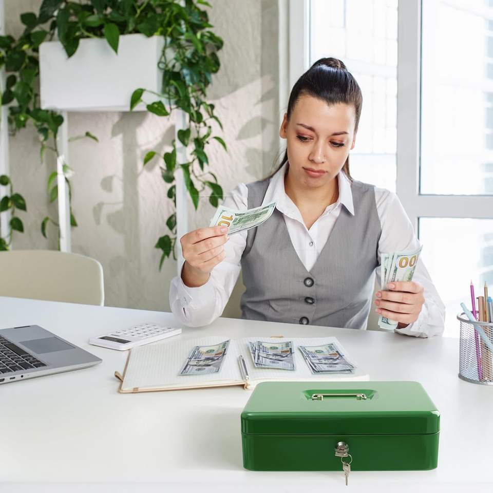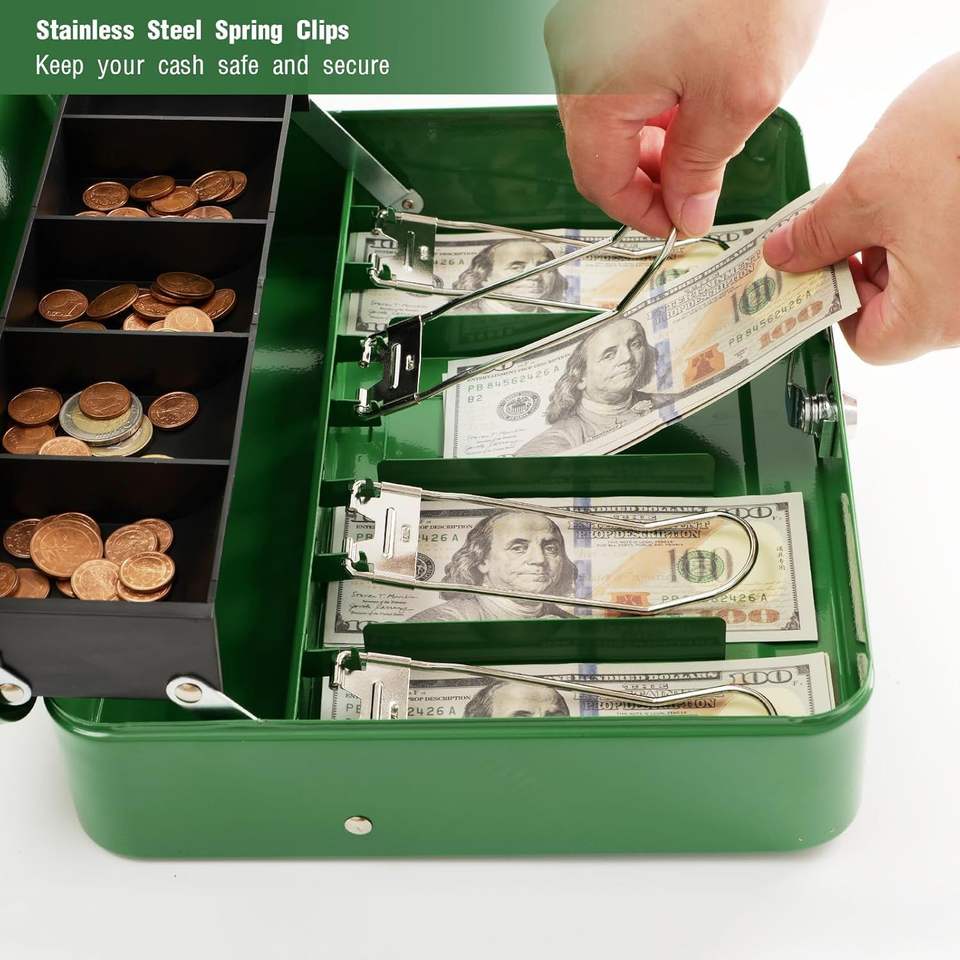 Caja de Dinero Metálica Grande con Cerradura y Llave, Bandeja para Dinero para Caja Registradora POS, Caja de Seguridad Metálica para Almacenamiento Seguro de Dinero