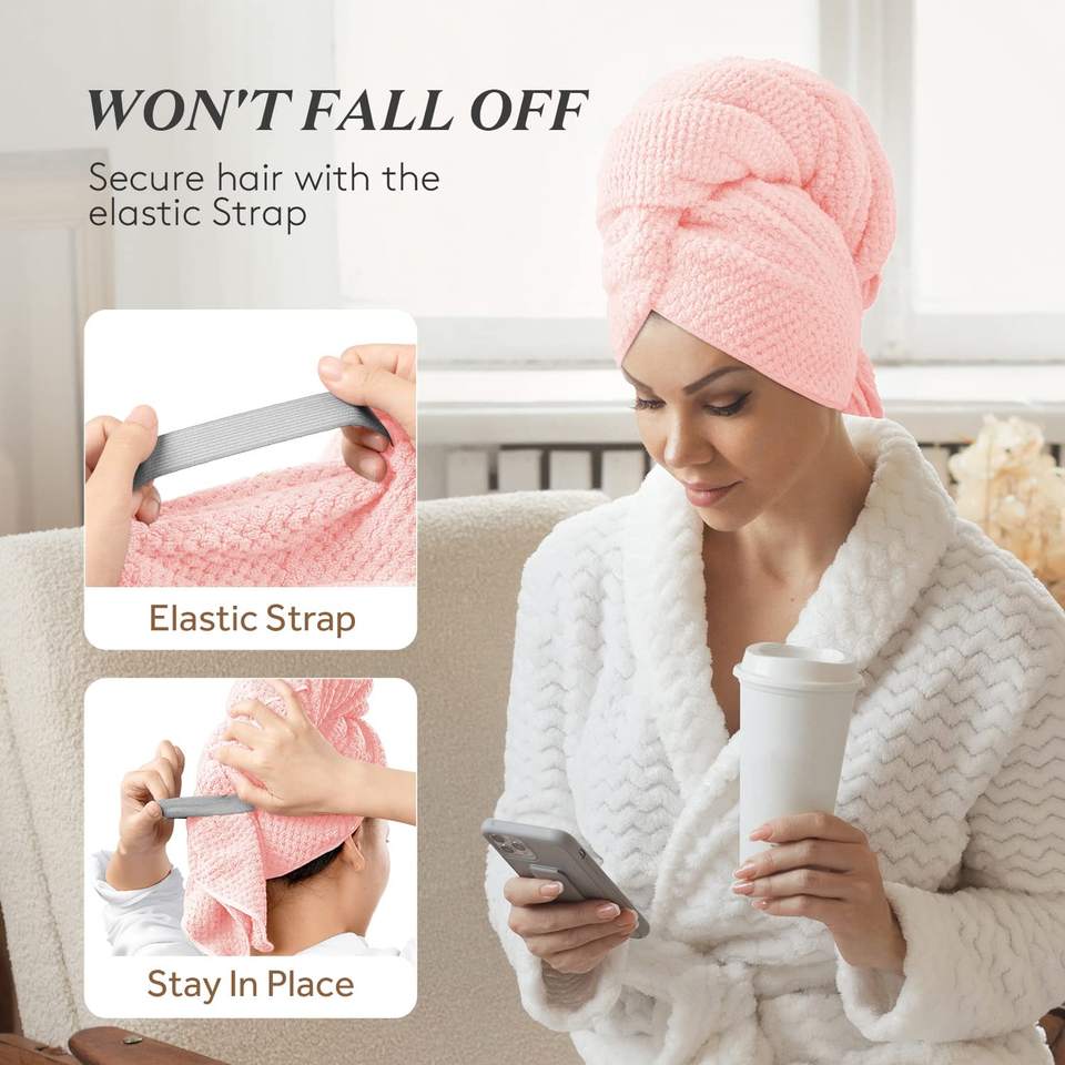 Turbante grande de microfibra para el cabello para mujer, envoltura de toalla de secado rápido antiencrespamiento con correa elástica, técnica tejida para cabello húmedo