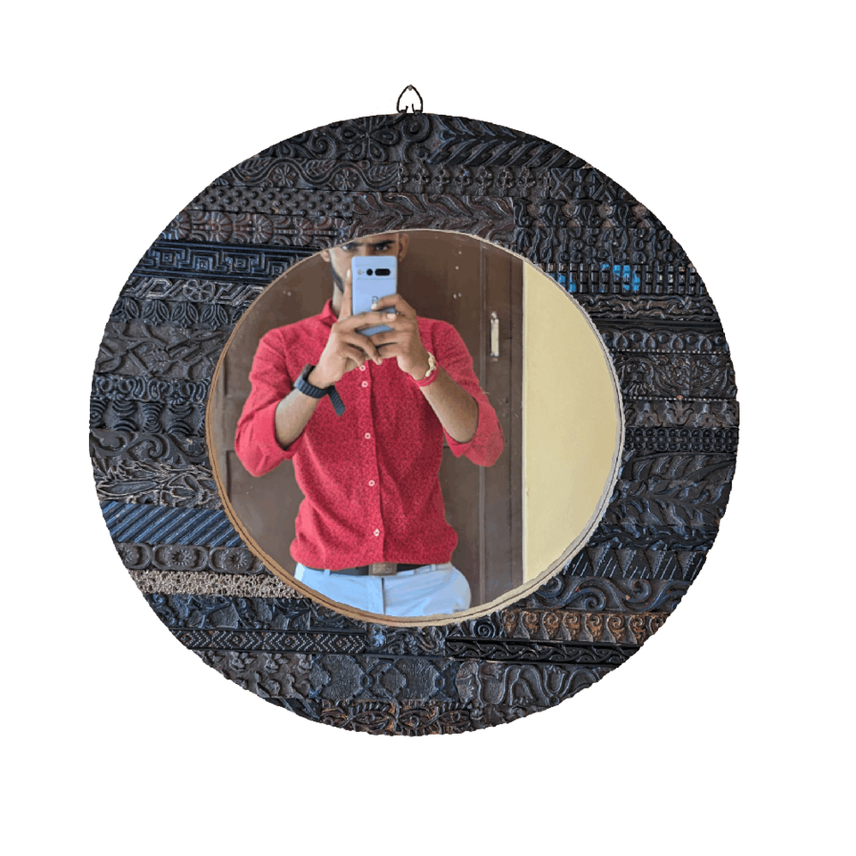 Espejo Redondo Grande Minimalista de Madera Reciclada Ligero para Baño, Hotel, Pasillo, Decoración de Pared, Compradores Comerciales