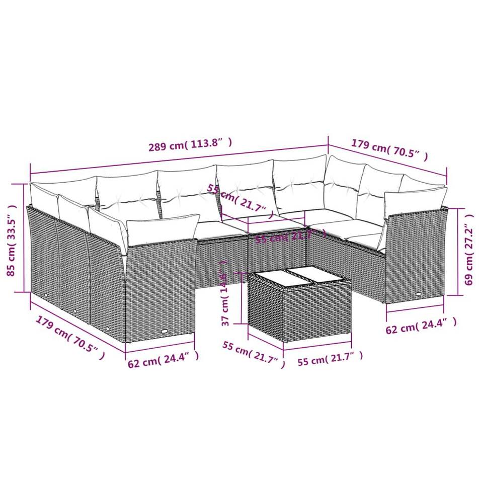 Conjunto de Sofás Modulares Grandes de Ratán Sintético PE Beige para Jardín, Muebles Modulares Cómodos para Exteriores