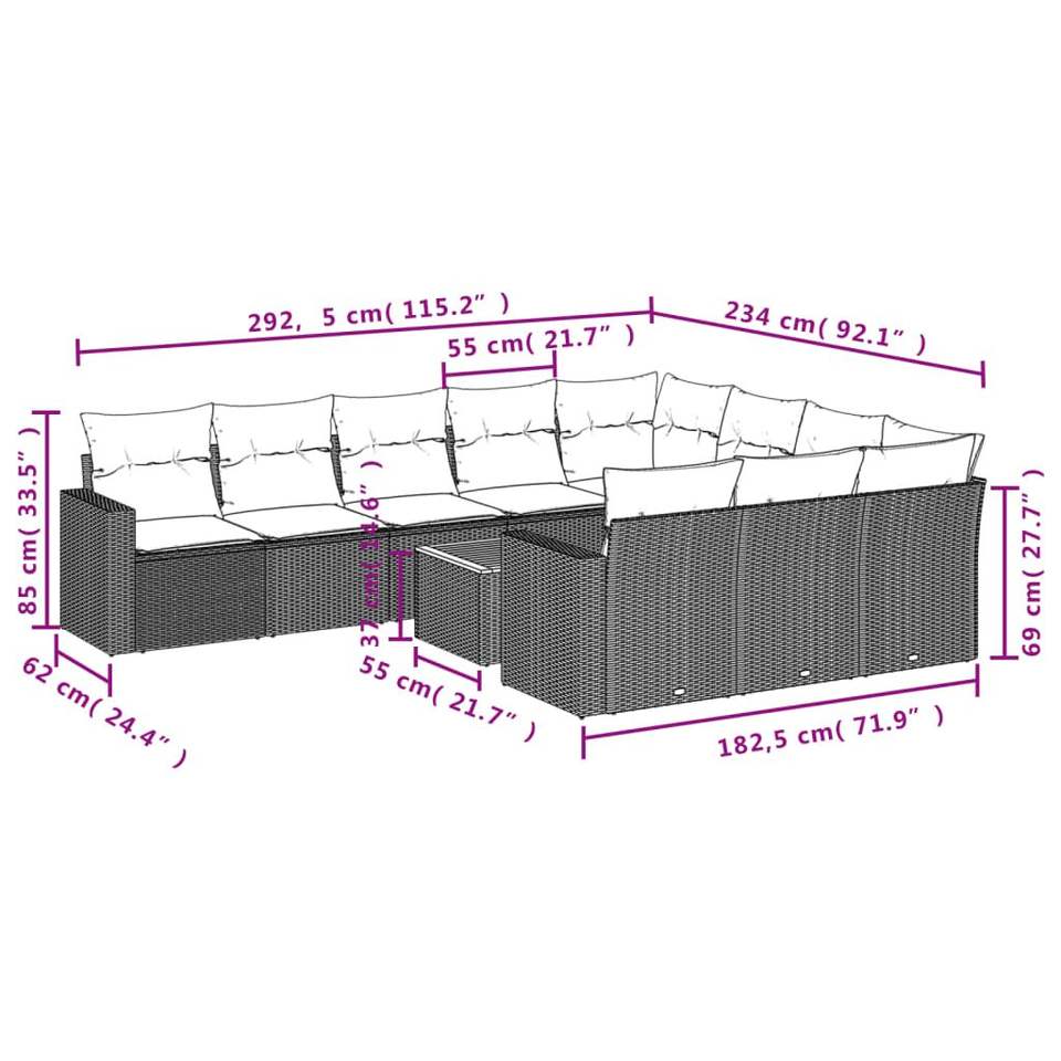 Conjunto de Sofás Modulares Grandes de Ratán Sintético Beige para Jardín, Muebles Modulares Cómodos para Exteriores