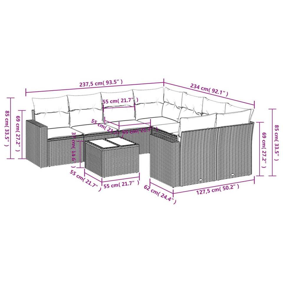 Conjunto de Sofás Modulares Grandes de Ratán PE Negro para Jardín, Muebles de Patio con Elegante Modularidad