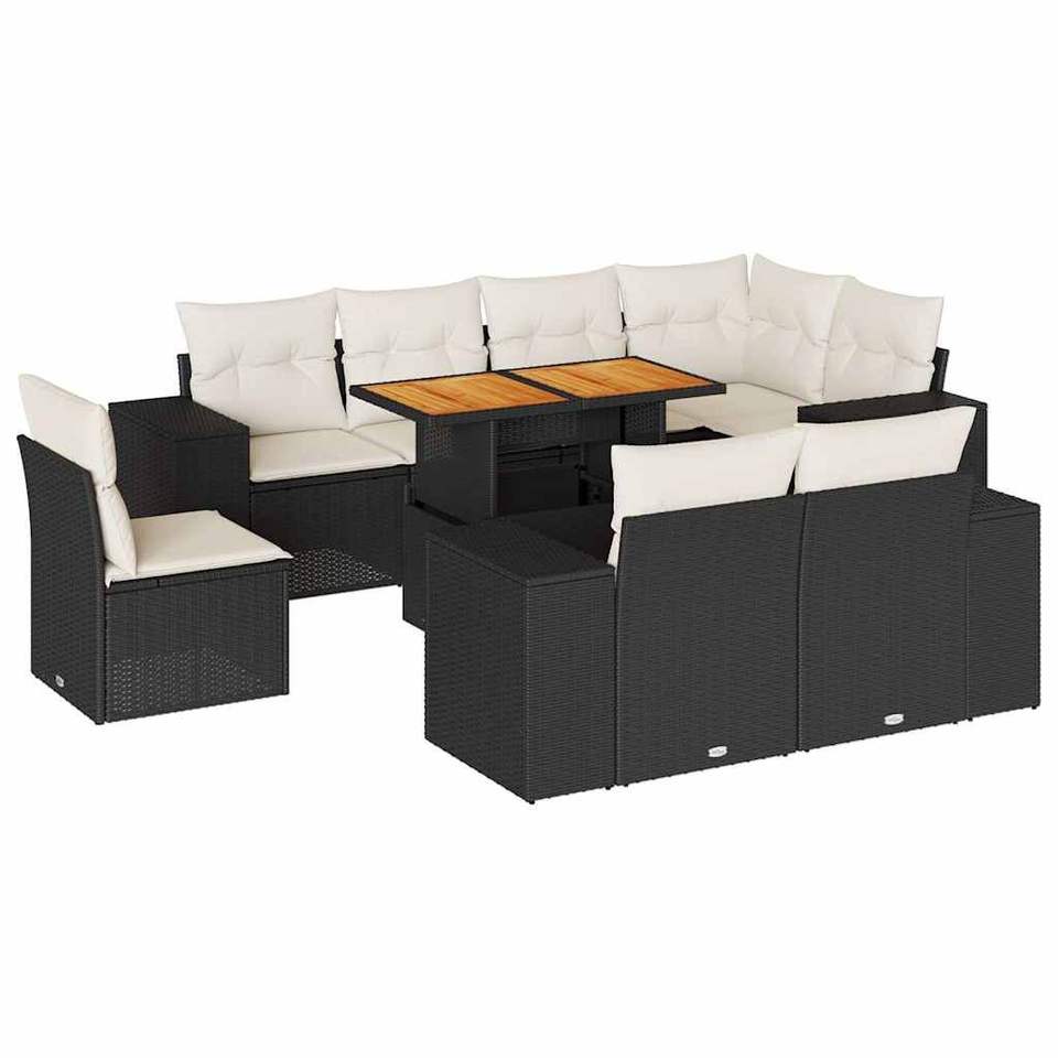 Conjunto de Sofás Modulares Grandes de Ratán PE Negro para Jardín, Elegante Colección de Muebles para Exteriores