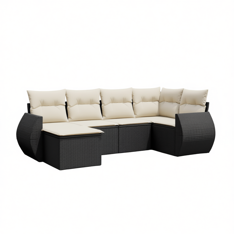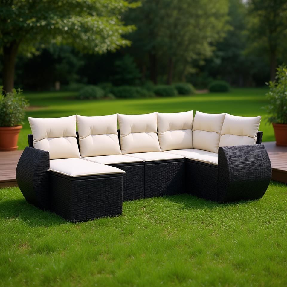 Conjunto de Sofá Modular de Ratán PE Negro para Jardín, Muebles Elegantes para Exteriores con Cojines de Espuma de Alta Densidad para Patio y Jardín