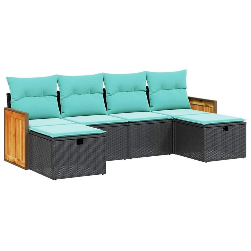 Conjunto de Sofás Modulares Grandes de Ratán PE Negro para Jardín, Elegante Espacio de Vida al Aire Libre