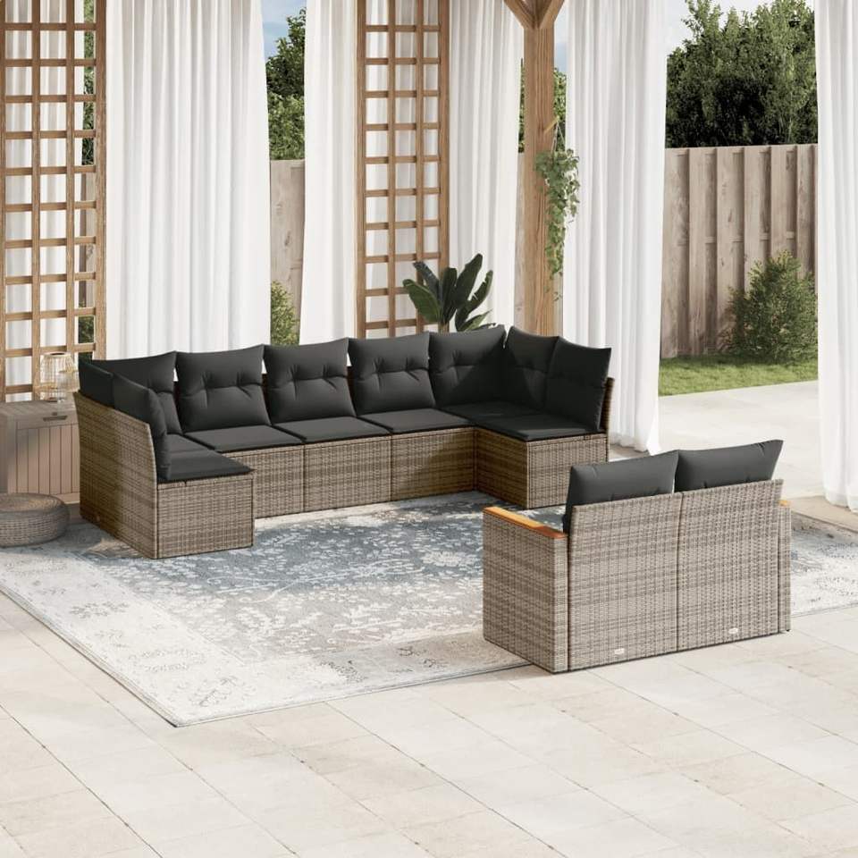 Conjunto de Sofás de Jardín de Ratán PE Gris Oscuro Modular Grande, Cómodo y Elegante