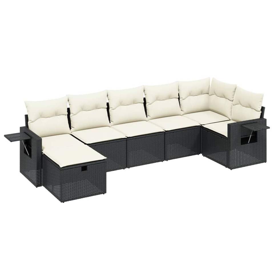 Conjunto de Sofás Modulares Grandes para Jardín en Ratán PE Negro y Acero, Muebles Modernos para Exteriores