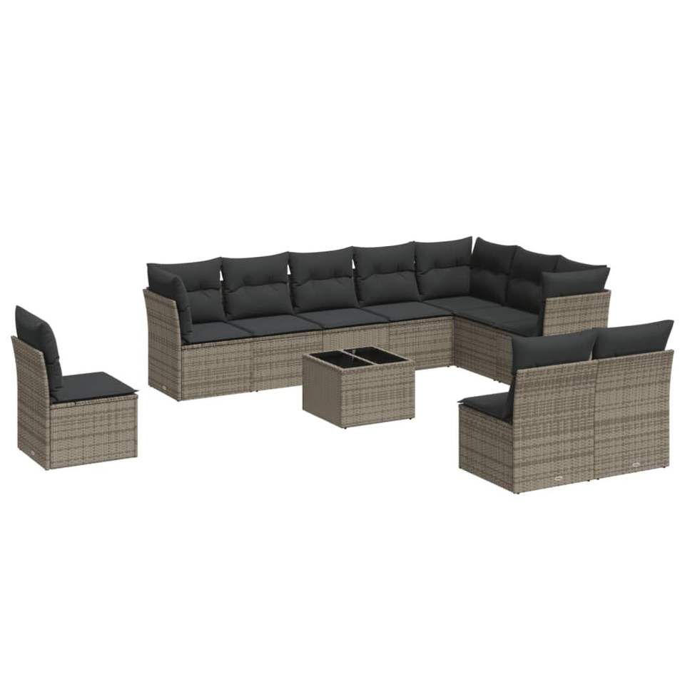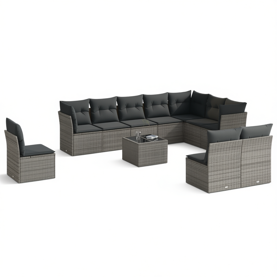 Conjunto de Sofás de Jardín de Ratán PE Gris Moderno, Muebles Modulares para Exteriores de 10+ Plazas, Diseño Contemporáneo