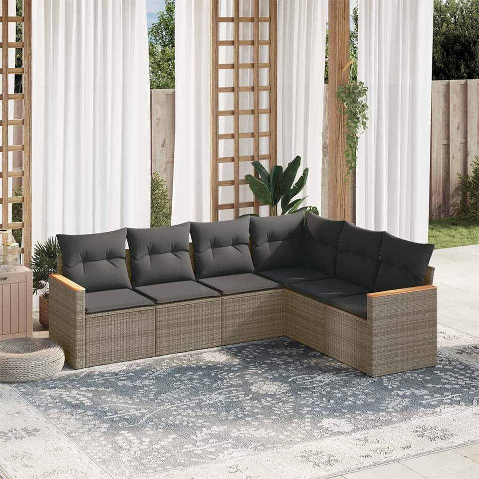 Conjunto de Sofás Modulares Grandes de Ratán PE Gris para Jardín, Colección Premium de Muebles para Exteriores