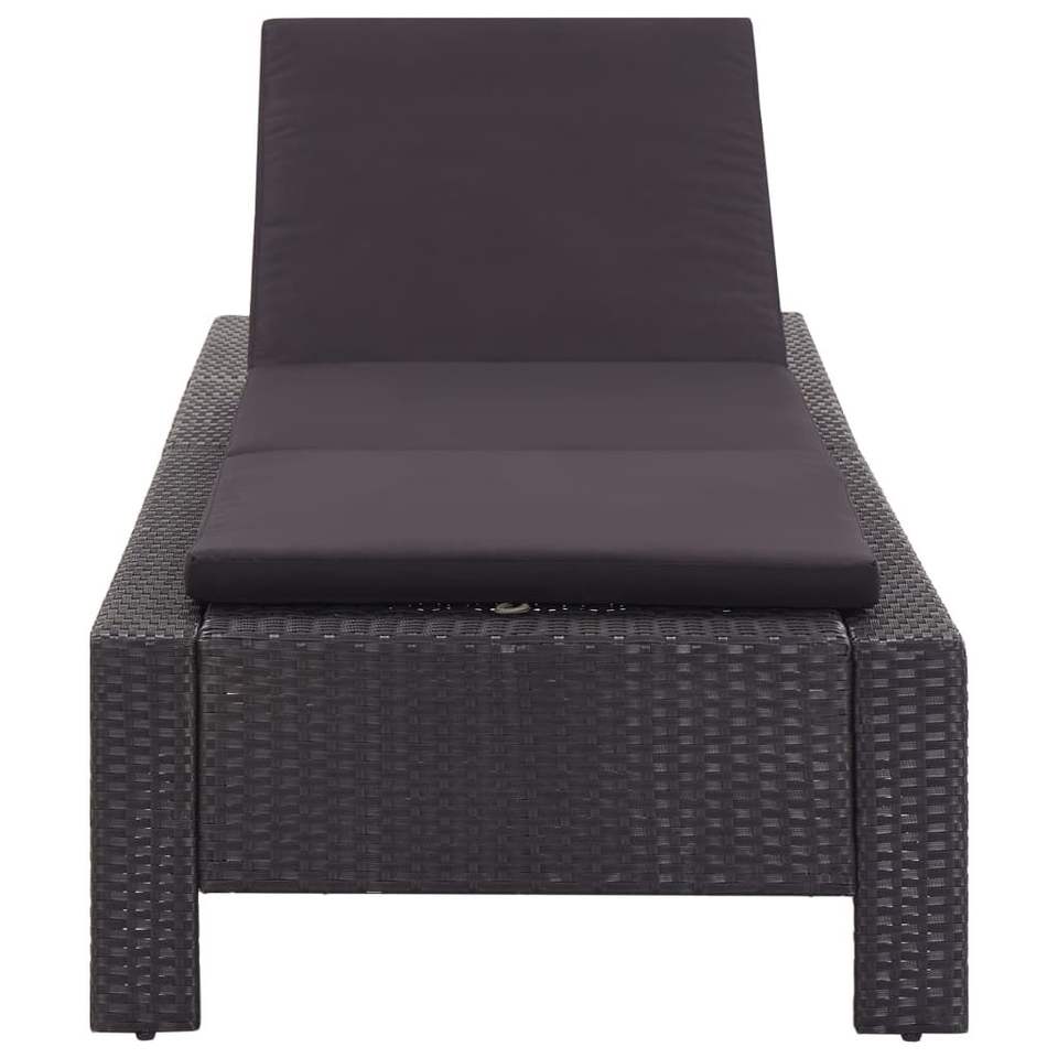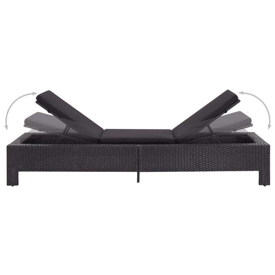 Tumbona Grande Multi-posición con Respaldo en Ratán PE Negro, Cómoda Tumbona para Exteriores