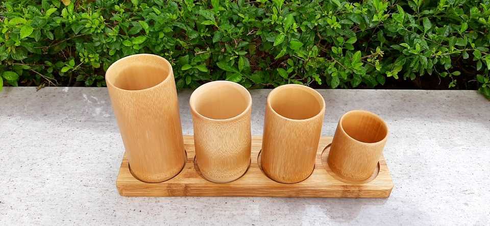 Vaso de Bambú Natural Grande, Duradero, Reutilizable y Ecológico para el Hogar y Restaurantes