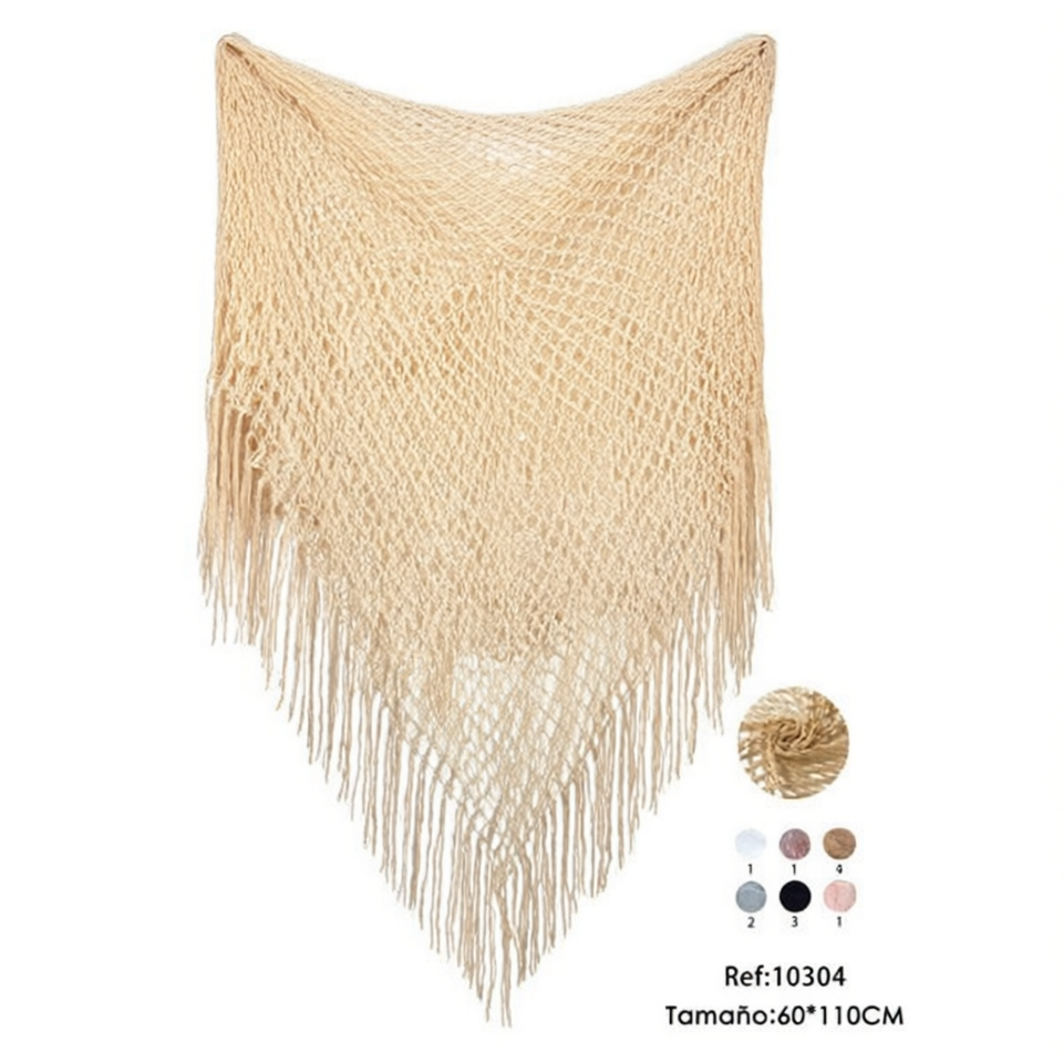 Chal de red grande 60x110cm con flecos beige para protección solar