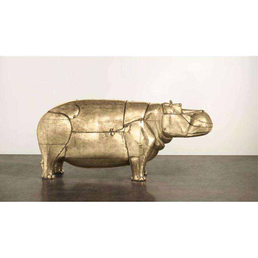 Gran boca abierta hipopótamo estatuilla decoración mesa exhibición objeto decorativo Metal artesanía tamaño personalizado bronce hipopótamo escultura para jardín