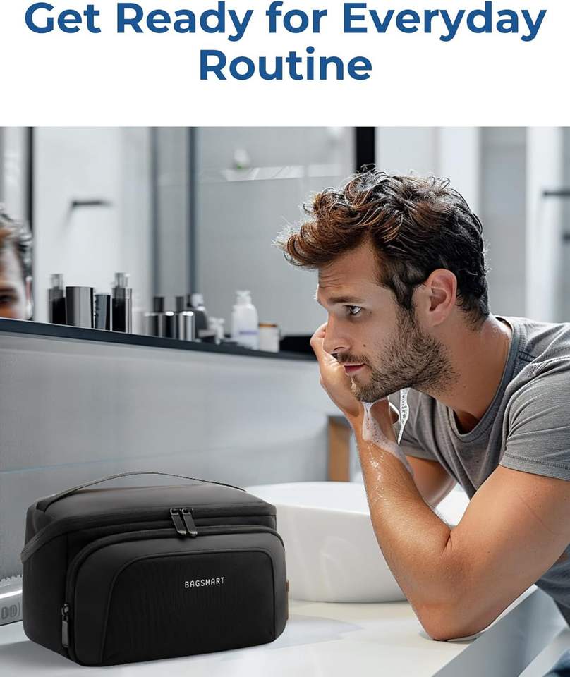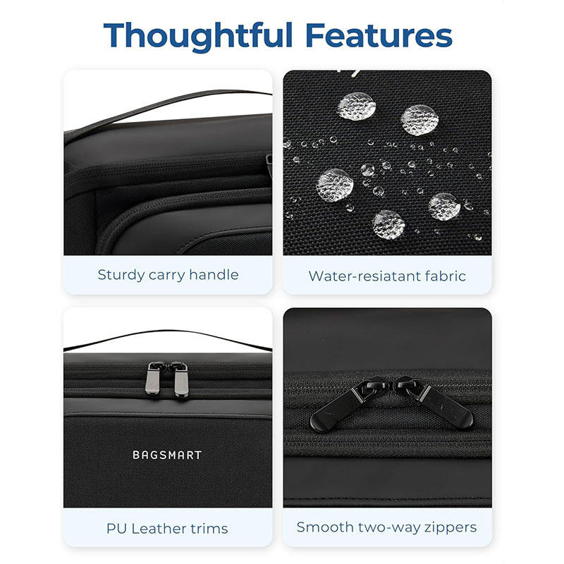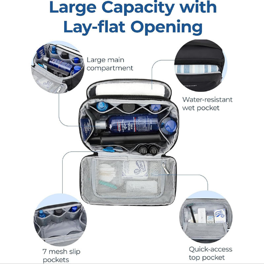Viaje de hilo de PU grande para organizador, Kit Dopp, bolsa de afeitar portátil de estilo Vintage para hombre, cierre de cremallera resistente al agua