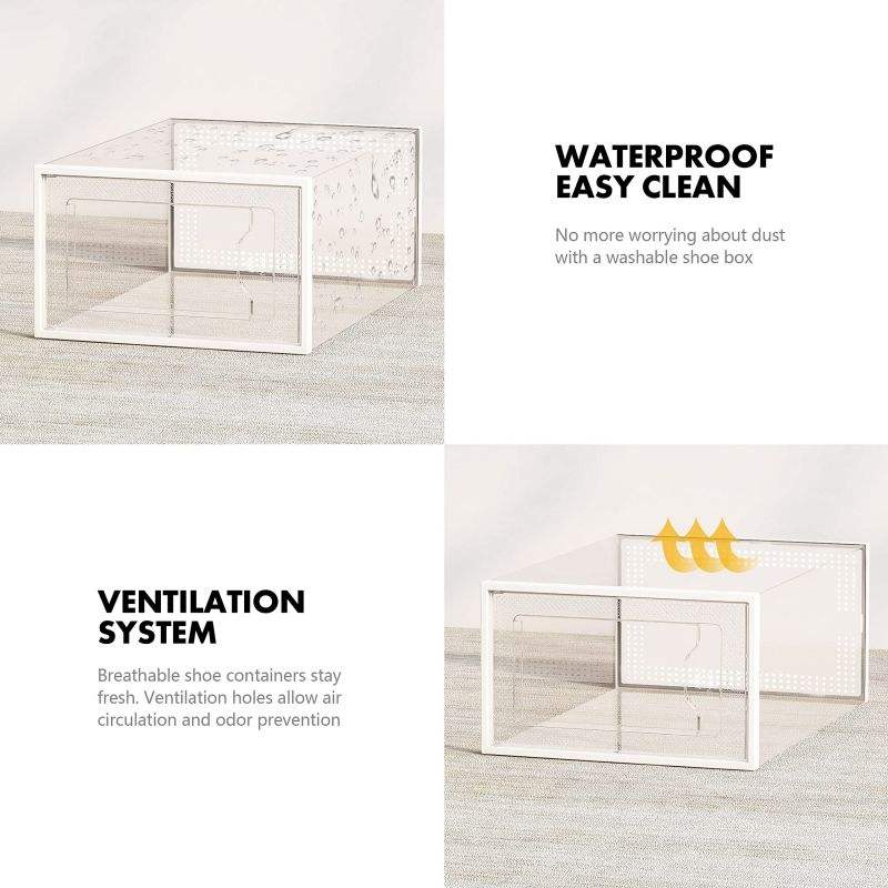 Caja de Almacenamiento de Zapatos Plegable, Apilable y Desmontable de Plástico Grande para Ahorrar Espacio en Armarios y Guardarropas, Organizador de Zapatos de un Solo Nivel
