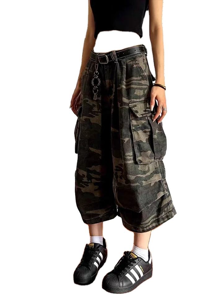 Pantalones cortos vaqueros holgados de camuflaje con diseño de Bolsillo grande para mujer, ropa de calle de verano, pantalones cortos Cargo, pantalones informales para mujer