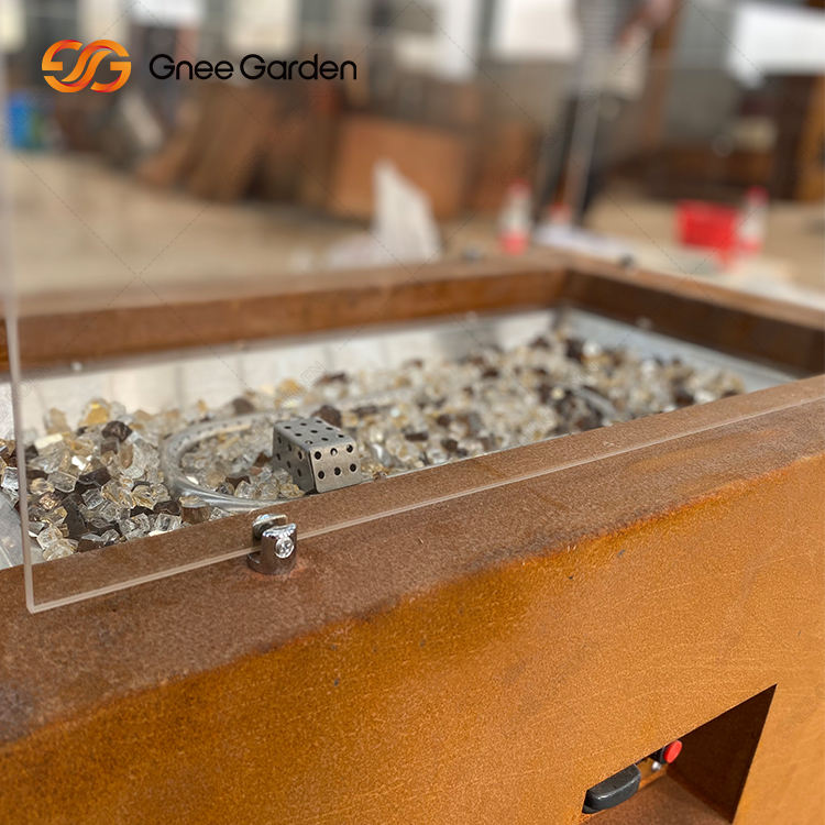 Brasero Portátil Grande de Acero Corten sin Humo para Leña, Mesa de Calefacción Exterior para Jardín