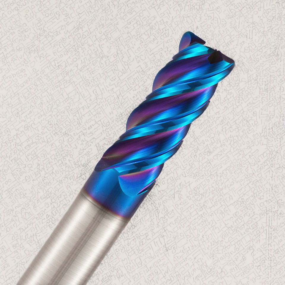 Fresa de Carburo de Gran Ángulo de Corte en R, 55HRC, 4 Filos, Punta de Cabeza de Vaca, Fresado TISIN, Modelo OEM 4R0.5