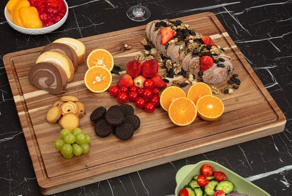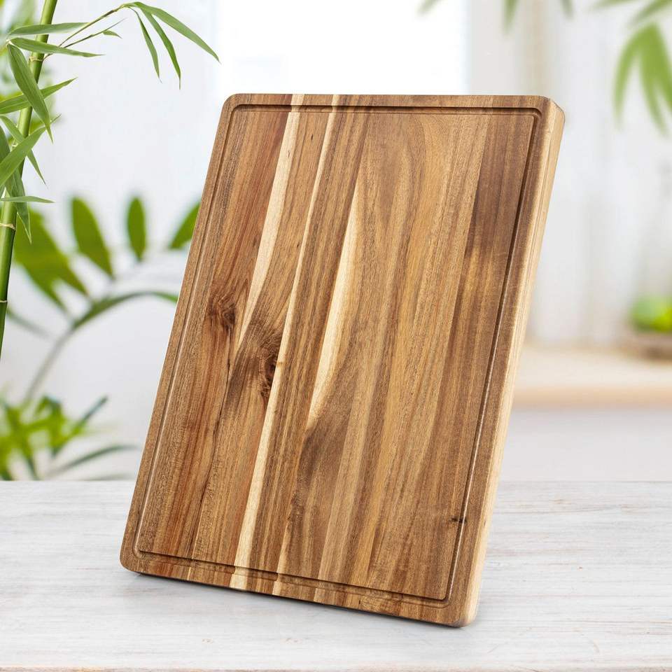 Tabla de cortar rectangular grande de madera con soporte para cuchillos, fácil de limpiar, 1.3 cm de grosor