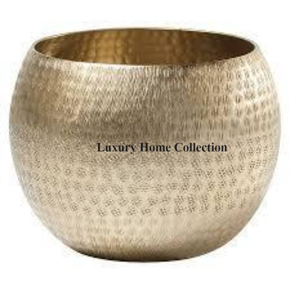 Gran forma redonda Metal resistente chapado en oro textura martillada Flores de alta calidad estándar Exhibición de artículos de jardín Macetas y jardineras