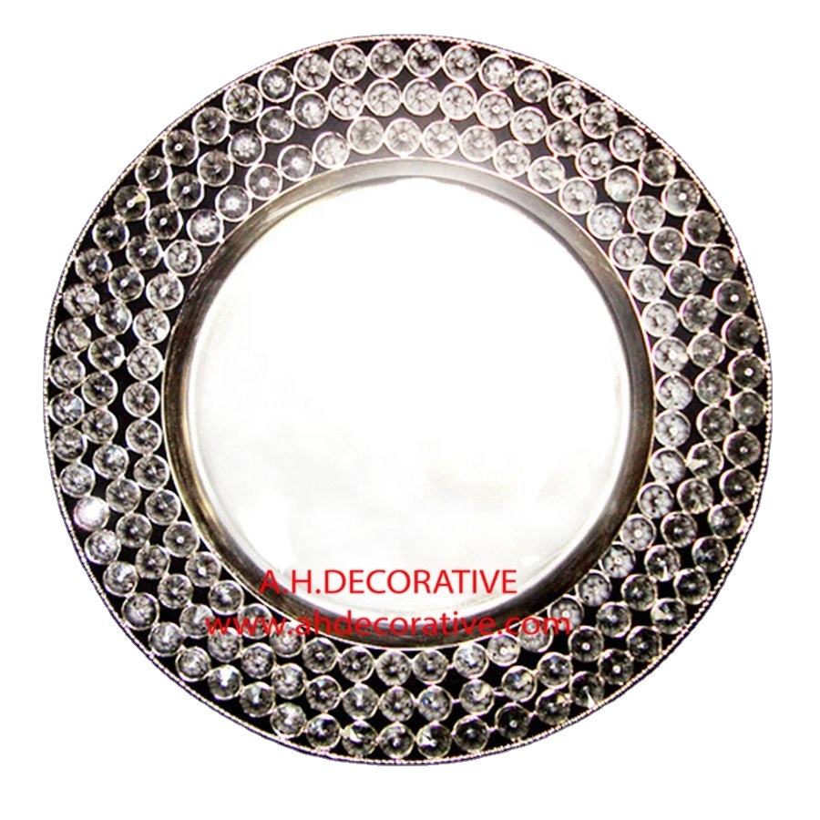 Cargador redondo grande con acabado de plata, bandeja para servir flores con borde de cristal, a la venta, precio más bajo