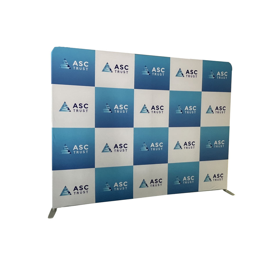 Gran escala portátil paso y repetir publicidad telón de fondo logotipo personalizado y tamaño Pop Up escenario telón de fondo Banners