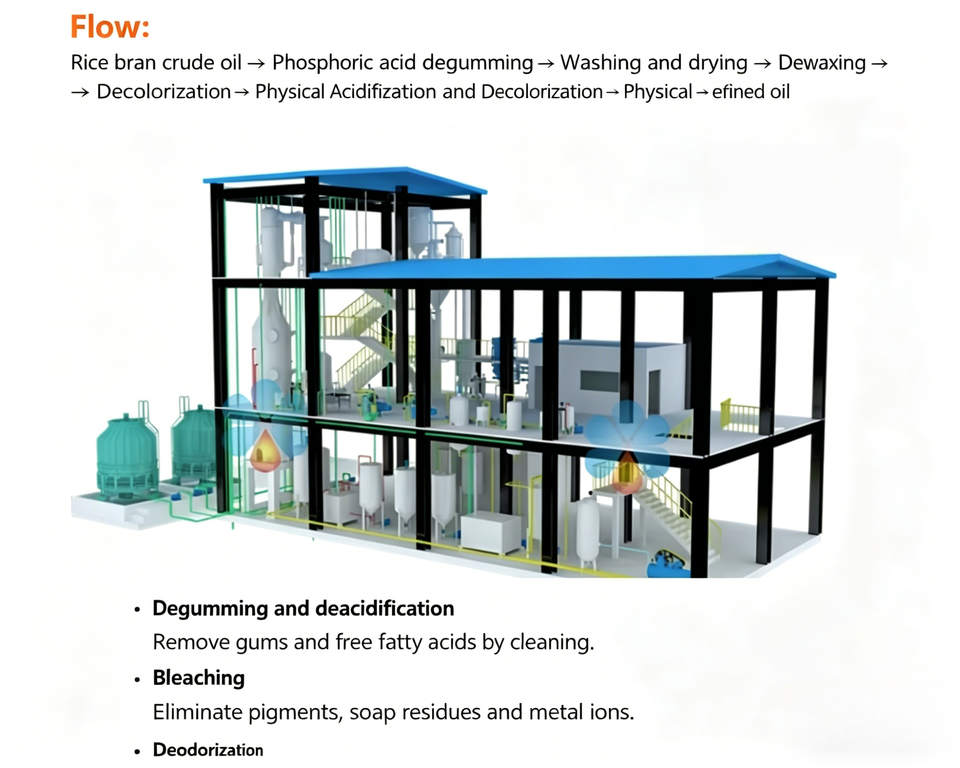 Línea de Producción de Refinación de Aceite de Salvado de Arroz a Gran Escala, Equipo de Refinería Automático Continuo Completo