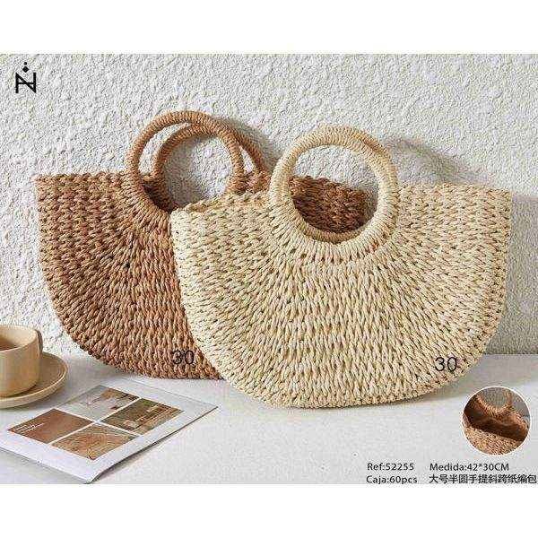 Bolsa de Papel Tejido Semicircular Grande de 42x30 cm, Bolso de Playa