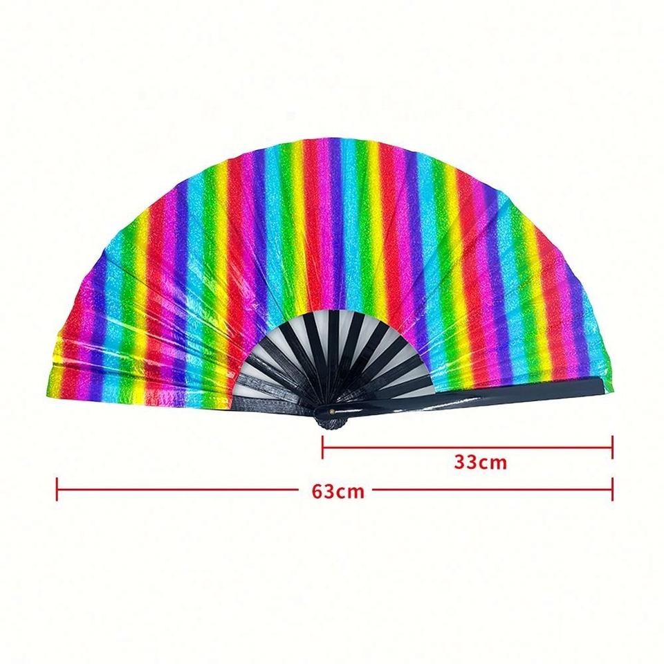 Ventilador de mano plegable reflectante brillante grande para festivales Ventiladores portátiles de plástico Clack con efecto brillante para Raves