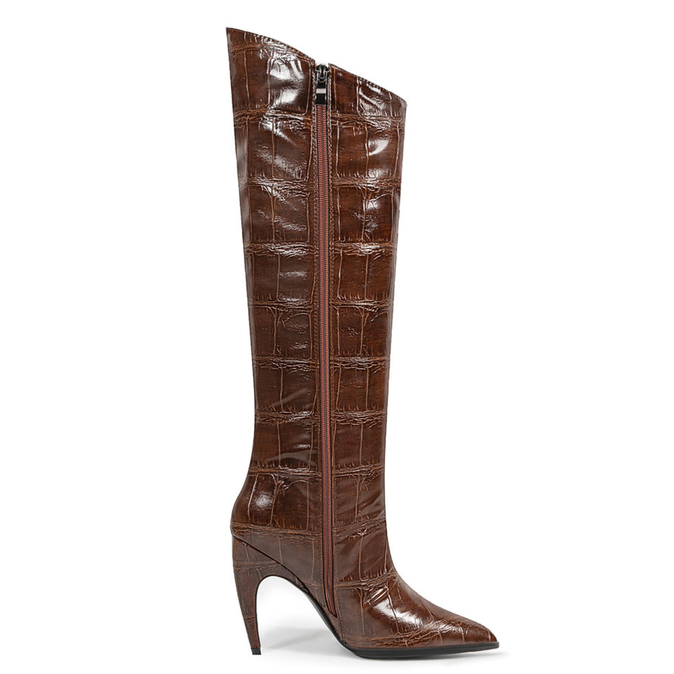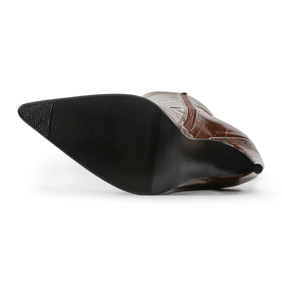 Botas largas de tacón alto con gancho, talla grande 45, ajuste ancho, estampado de piedra, zapatos de tacón de aguja para mujer, botines hasta la rodilla con cremallera lateral