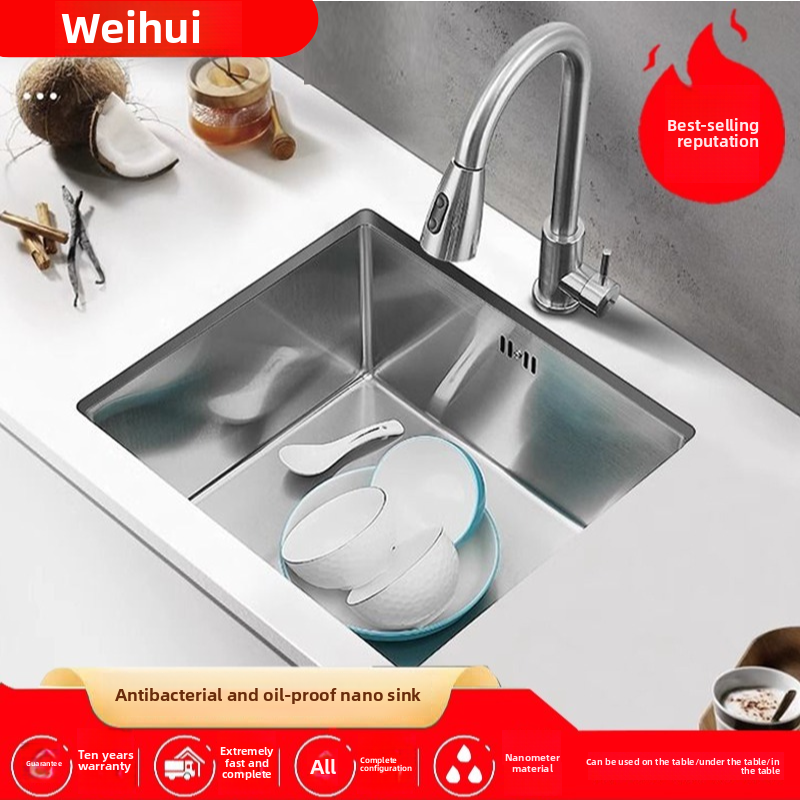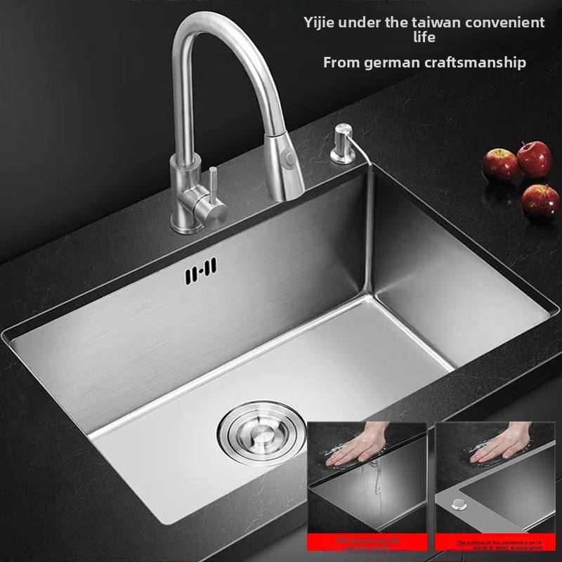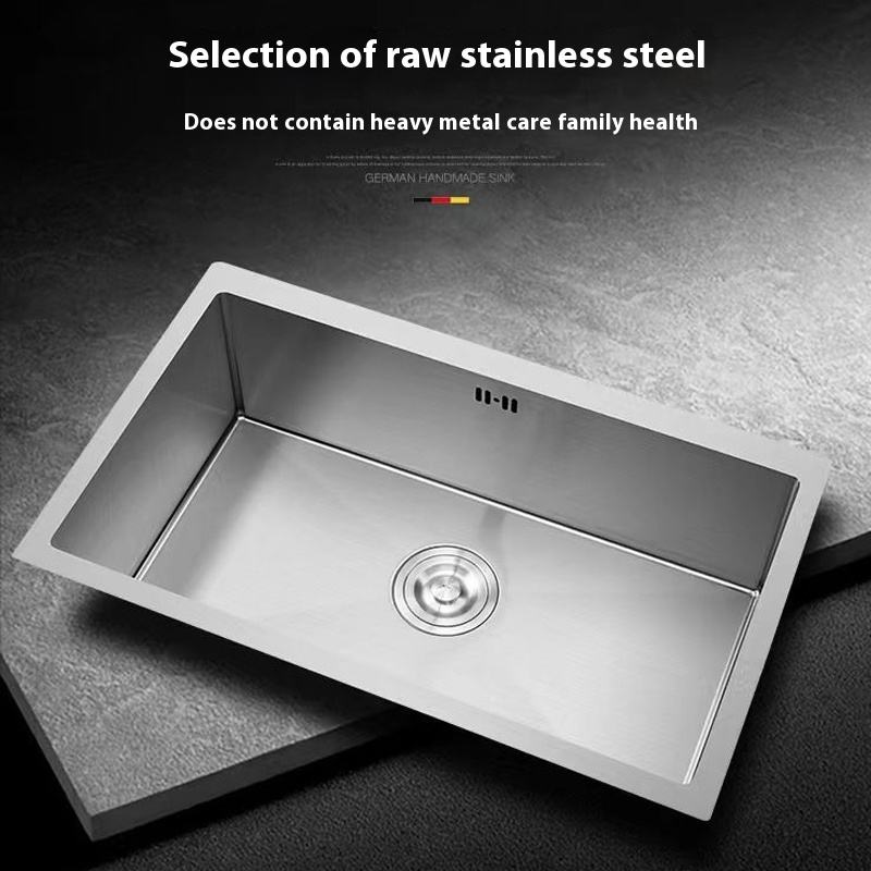 Fregadero de cocina de un solo cuenco de 45X45 pulgadas de gran tamaño Color original cepillado SUS304 Acero inoxidable Ranura única Dos estrechos gruesos