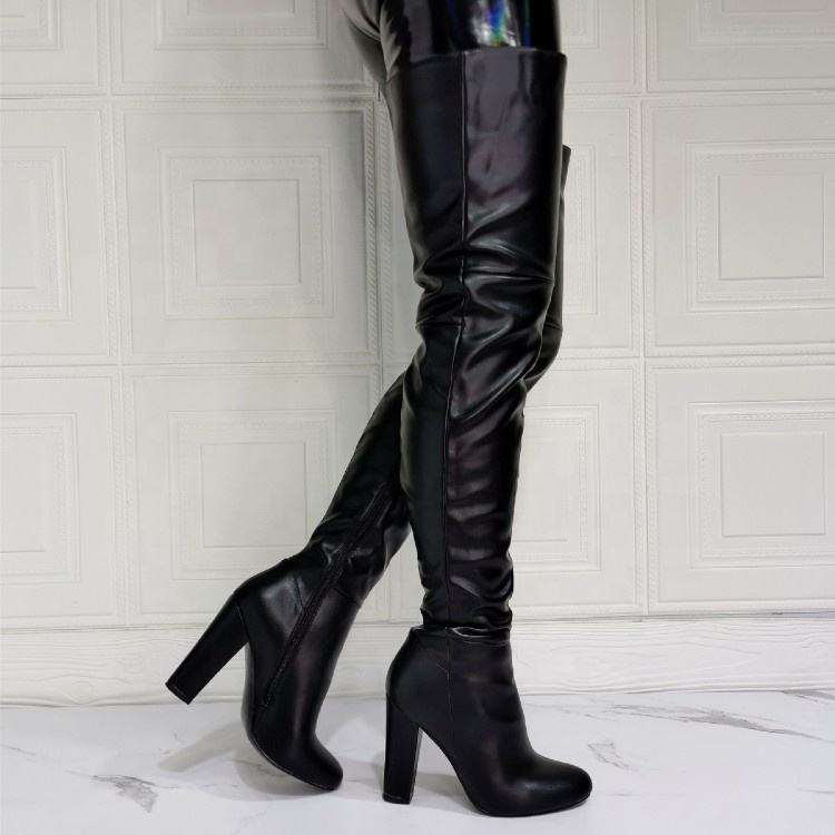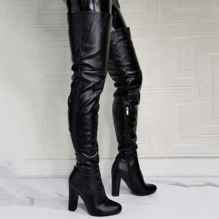 Botas de mujer de tacón grueso, ajustadas, con cremallera lateral, por encima de la rodilla, talla grande 47, punta redonda, para uso diario, botines de invierno hasta el muslo para mujer