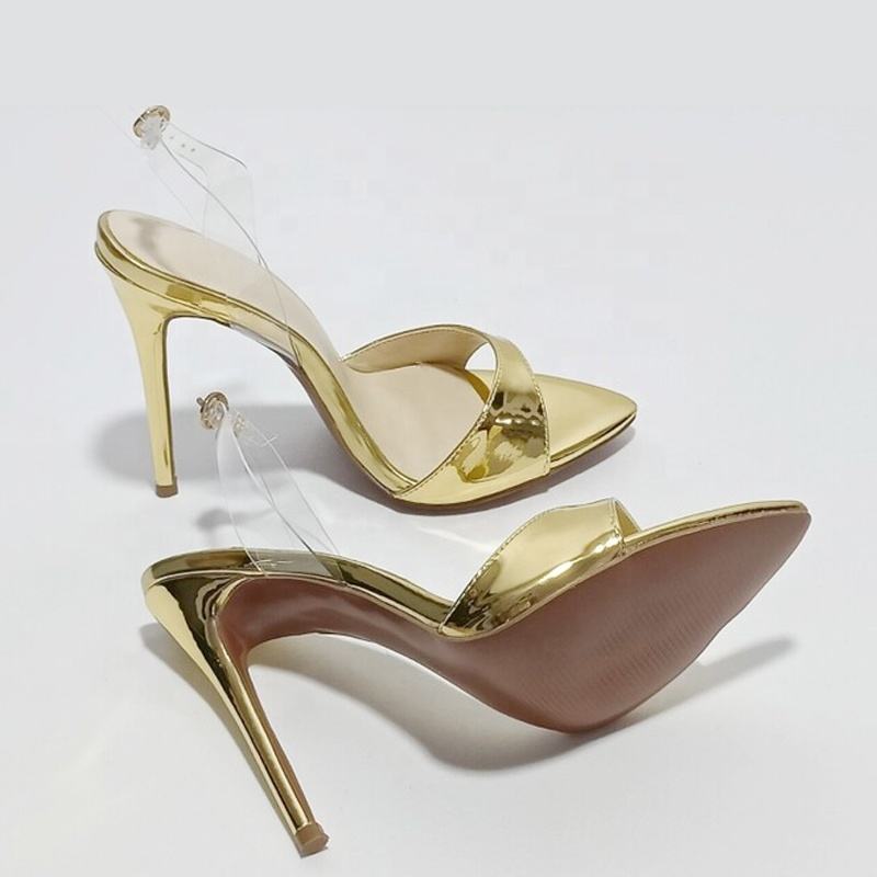 Zapatos de Tacón Alto con Correa Trasera de PVC para Mujer, Talla Grande 47, Sandalias con Punta Abierta, Ajuste Ancho, Tipo Slingback