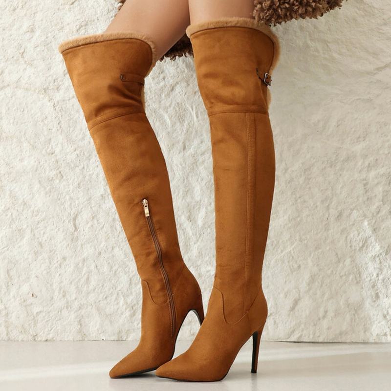 Botas Altas de Piel Sintética Talla Grande 48 para Mujer, Botines Largos de Ante con Tacón de Aguja, Cálidos para Invierno, Ajuste Ancho para Piernas Anchas
