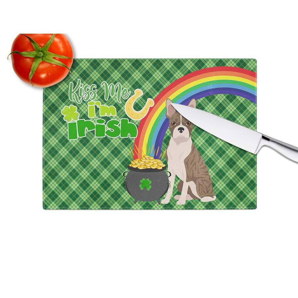 Tabla de cortar de gran tamaño Brindle Boston Terrier Tabla de cortar de vidrio del Día de San Patricio Vidrio templado decorativo Servicio de cocina