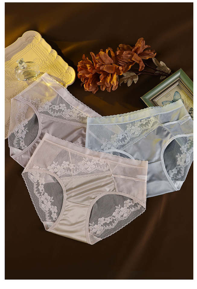 Braguitas de Cintura Media para Chicas Curvilíneas, Talla Grande, Lencería Ligera de Lujo, Encaje Sexy, Malla Transparente, 100.00 kg